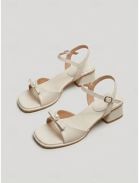 Женские свадебные сандалии на массивном каблуке цвета слоновой кости – элегантные свадебные туфли с открытым носком и ремешком на щиколотке для невесты, планирующей свадьбу в саду.