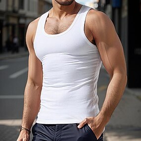 Муж. Безрукавка Майки Мускулистая рубашка Рубашка с женой Без рукавов Глубокий U-образный вырез Совок шеи Глубокий круглый вырез Лето Сплошной цвет Полотняное плетение Пит Стрип