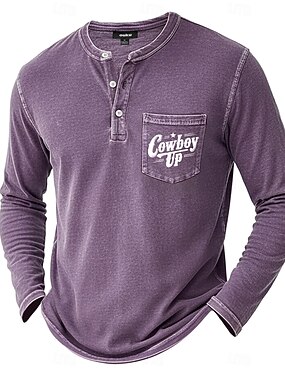Муж. Рубашка Хенли Рубашка из 100% хлопка с кислотной стиркой футболка футболка Длинный рукав Винтаж печать букв Ретро На каждый день Проблемный С принтом Карман Окрашенная одежда Хенли Повседневные