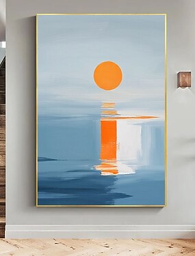 минималистичная картина на холсте с изображением заката, абстрактная картина с океаном для украшения стен, современный пляжный декор, современный морской постер, стильное пейзажное произведение