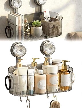 Коробка для хранения в ванной комнате на присосках, не требующая сверления, съемная подвесная коробка для хранения в ванной комнате на присосках (модернизация 2026 года), держатель для хранения из