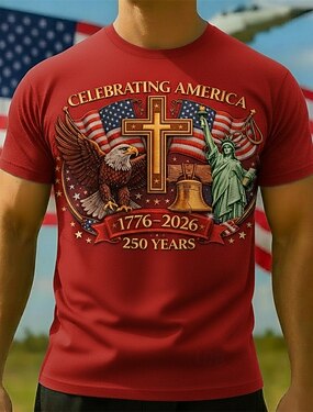 250-летие США Футболка и кепка - Футболка с графикой орла на фоне флага США 1776-2026 Патриотичная для мужчин на День независимости