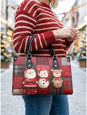 женская рождественская сумка-тоут из искусственной кожи, с рисунком Санты и снеговика, праздничная подарочная сумка для женщин, праздничная сумка для Рождества, идеально подходит для вечеринок и зимних прогулок