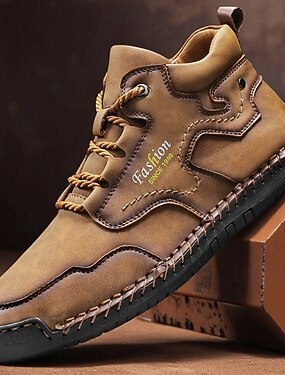 Мужские походные ботинки из искусственной кожи светло-коричневого цвета – прочные и надежные, со стильной строчкой, идеально подходят для активного отдыха и пеших походов
