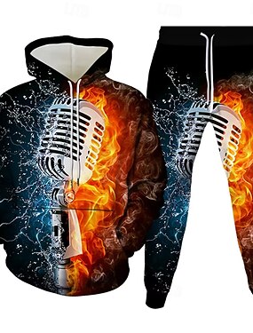 музыкальный фестиваль Муж. Музыка 2шт Комплекты 3D-толстовок Спортивный костюм Толстовка с капюшоном Длинный рукав Длинные брюки Капюшон Современный На каждый день