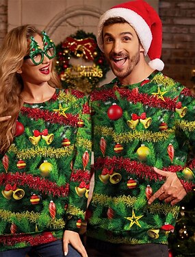 Рождество Толстовки с круглым вырезом Новогодние ёлки Графический Оригинальные Забавный для Для пары Муж. Жен. Взрослые 3D печать для Рождество Карнавал Новый год Выступление