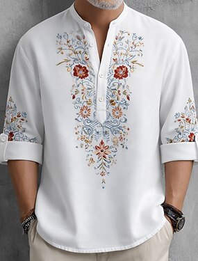 Муж. Цветочный принт Этнический Цветы Рубашка Кнопка рубашка Рубашка Хенли Длинный рукав Винтаж Ретро Повседневные Отпуск Свадьба Лето Весна Китайский воротник-стойка Воротник-стойка 3D
