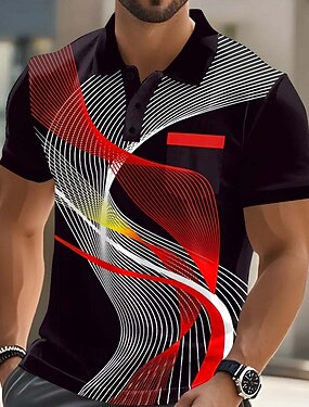 Муж. геометрический Линии Поло С короткими рукавами Футболки поло Рубашки с воротником На каждый день Школа на открытом воздухе На каждый день Домашняя одежда 3D печать Лето Весна Осень Черный