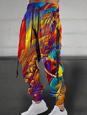 Муж. Графика Штаны Бегун Брюки Нормальная Эластичная талия на шнурке На каждый день на открытом воздухе Для улицы На каждый день Карман Весна Осень Зима 3D печать Multi Color