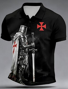 Муж. Крест Рубашки поло С короткими рукавами Футболки поло Рубашки с воротником На каждый день на открытом воздухе На каждый день 3D печать Пуговицы Лето Весна Синий Лиловый Коричневый