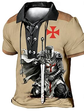 Муж. Готический ужас Крест Поло С короткими рукавами Футболки поло Рубашки с воротником Винтаж На каждый день Одежда для спорта и отдыха На каждый день 3D печать Пуговицы Лето Коричневый