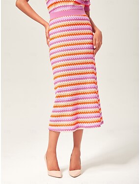 Жен. Мужской Средней длины Трикотаж Эластичное шелковое переплетение Розовый Подол Лето Весна Завышенная Элегантный стиль Богемия На каждый день XS S M