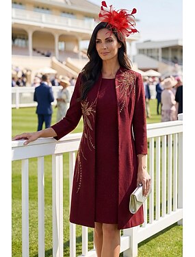 Платье на выпускной в виде футляра длина до колена вечернее платье коктейльное платье платье для гостей на свадьбе платье для матери невесты рукав 3/4 элегантное винтажное с вышивкой