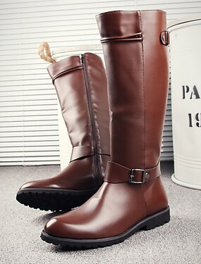 Мужские коричневые сапоги для верховой езды до колена из искусственной кожи с пряжкой и застежкой-молнией для повседневного и конного стиля