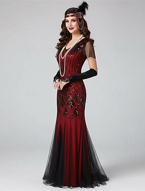 Бурные 20-е 1920-е годы До щиколотки Длинный Вечернее платье Коктейльные платья Обруч в стиле флэппер Без рукавов Великий Гэтсби Свадебный гость Пайетки Пайетки Круглый вырез Совок шеи
