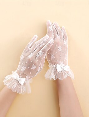 Кружева / Тюль До запястья Перчатка Элегантный стиль / Вечеринка / Стиль С Чистый цвет Свадьба / Партия перчатки