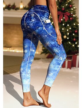 Новогодняя тематика Жен. леггинсы для пилатеса Штаны для фитнеса Леггинсы для спортивного зала Карманы Гербовый сбор Боковые карманы Пилатес Тренажерный зал Тренировка в тренажерном зале