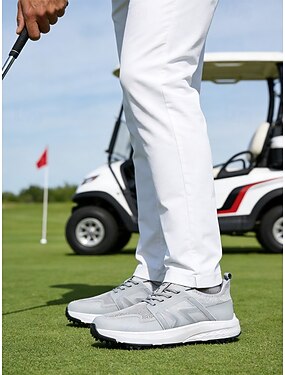Мужские белые и серые кроссовки для гольфа, легкая, дышащая конструкция, амортизирующая подошва, лаконичный спортивный стиль для игроков в гольф.