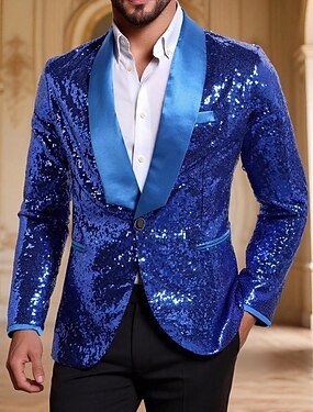 Дискотека В стиле 1980-х смокинг Костюмы и блейзеры Блейзер с лацканами и воротником Длинные рукава Диско Пайетки Пайетки Маскарадный костюм Муж. Карнавальный костюм Хэллоуин Карнавал Маскарад