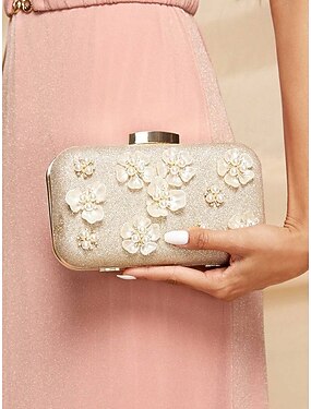 женский 3d цветочный клатч с жемчужными вставками и золотой цепочкой – стильная вечерняя сумочка для свадеб, вечеринок и официальных мероприятий серебристый черный золотой