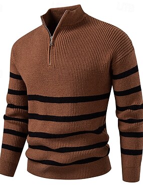 Муж. Пуловер Свитер Свитера на четверть молнии Вязаный свитер Рельефный узор Вязать Обычные топы Трикотаж Полоса Половина молния Мода На каждый день Отпуск На каждый день Одежда Осень Зима