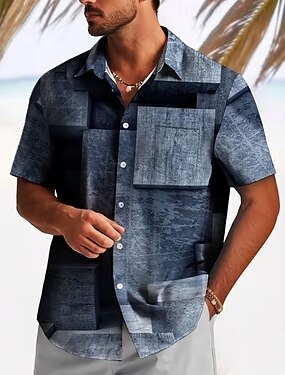 Муж. Геометрический принт В клетку Рубашка Летняя рубашка Кнопка рубашка С короткими рукавами Мода Повседневная на открытом воздухе Отпуск На каждый день Лето Весна Отложной 3D