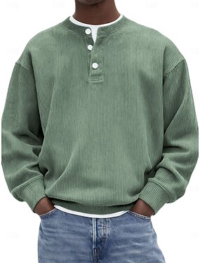 Муж. Вельветовая рубашка Рубашка Хенли Футболки Длинный рукав Сплошной цвет Полотняное плетение Мода Оригинальный рисунок На каждый день Кнопка вверх Хенли на открытом воздухе Повседневные