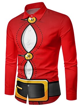 рождественские мужские забавные рождественские принтованные рубашки рубашки Санта-Клаус отложной воротник белый+красный зеленый черный армейский зеленый красный 3D принт открытый длинный рукав на