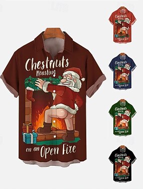 рождественские мужские рубашки с принтом Санта-Клауса каштаны графический Санта-Клаус повседневные уличные осенние отложные с коротким рукавом красные бордовые темно-синие жарка на открытом огне