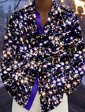 Новогодняя тематика Муж. Блестящий Космический принт Рубашка Кнопка рубашка Длинный рукав Мода Повседневная на открытом воздухе Праздники Весна Осень Отложной 3D печать рубашки с воротником