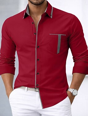 Муж. Рубашка Рубашка на пуговицах Нежелезная рубашка Кнопка рубашка Контрастных цветов Повседневные Дом Белый Красный Темно синий Хаки Длинный рукав Отложной Весна Весна & осень Одежда Пэчворк