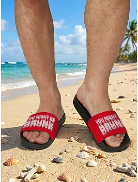забавные мужские сандалии-слайдеры - смелый принт «Вы, возможно, пьяны», удобные нескользящие тапочки для бассейна и пляжа, повседневная летняя обувь