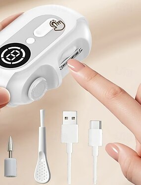 Электрическая пилочка для ногтей 4-в-1 с аккумулятором и светодиодной подсветкой, питанием от USB, обеспечивает салонное качество, имеет 2 скорости и подходит для женщин, мужчин, взрослых и пожилых