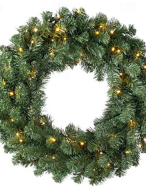 искусственный рождественский венок для входной двери, окна или каминной полки, зеленая ель с белыми огнями для праздничного декора в помещении и на улице