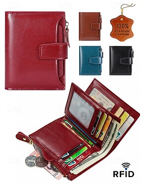 Женский кошелек из натуральной кожи с защитой от RFID, вместительный, на молнии, для нескольких карт, классический стиль, разноцветный, идеально подходит для повседневного использования, путешествий, покупок и в качестве подарка.