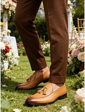 Мужские лоферы с кисточками из искусственной кожи коричневого цвета – элегантная классическая обувь для свадеб, торжественных случаев и в качестве аксессуара для жениха.