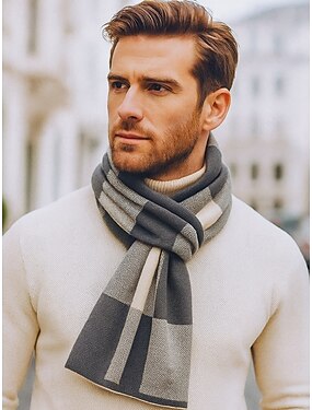 мужской зимний клетчатый шарф из искусственной шерсти – мягкая теплая полосатая шаль для деловых и повседневных дел, а также в качестве подарка на праздники