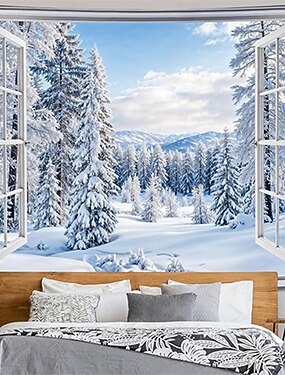 гобелен Плакаты Одеяло Зимняя страна чудес 森林 3D Спальня Гостиная Общежитие Комната для подростков Общежитие колледжа Стена крыльца Домашний декор
