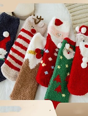 Рождественские женские носки-тапочки, плюшевые носки из флиса с рисунком кораллового цвета, пушистые носки-тапочки до середины голени, рождественский праздничный трансграничный выпуск