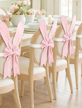 Чехлы на спинки стульев с пасхальным кроликом, ушками кролика ко Дню святого Валентина, милые розовые чехлы с кроликом для украшения стульев, съемные эластичные чехлы для дома, обеденного стола, дня рождения.