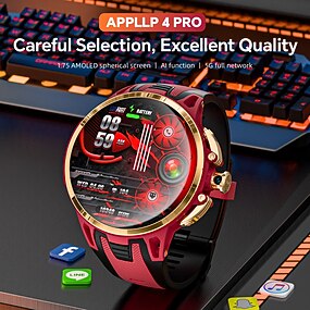 Смарт-часы Lokmat Appllp 4 Pro 1,75 дюйма, 4G LTE, сотовая связь, шагомер, напоминание о звонках, отслеживание сна, совместимы с Android и iOS, унисекс, GPS, IPX-1, корпус 50 мм.