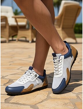 Мужские сине-белые повседневные кроссовки на шнуровке, легкие и удобные, для прогулок на открытом воздухе, отдыха на курорте, отпуска, отдыха на курорте, выходных прогулок и повседневной носки в стиле smart casual.