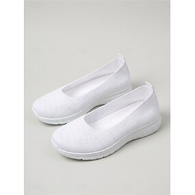 Женские белые легкие прогулочные туфли без шнурков – дышащие вязаные кроссовки для комфорта в путешествиях, повседневной носки и отдыха.