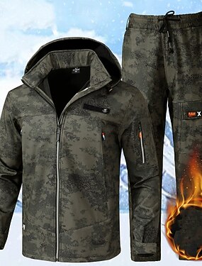 Муж. Куртка для туризма и прогулок Флисовая жилетка Зимнее пальто Куртка-пуховик Тепловой набор Зима на открытом воздухе камуфляж Сохраняет тепло Водонепроницаемость Верхняя часть Зеленый