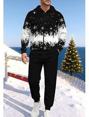 Новогодняя тематика Муж. Толстовка Спортивный костюм Толстовка на молнии Кулиска Карманы Брюки Толстовка Худи и брюки Осень Черный с белым Белый + черный