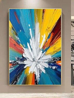 Расписанная вручную яркая абстрактная красочная картина на холсте с лучами, абстрактная текстурированная пастозная палитра, 3D-картина с ножом, настенное искусство для декора дома, рождественский