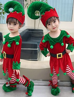 Эльф Инвентарь Новогоднее платье Костюм эльфа Косплэй костюмы Мальчики Девочки Рождество Специальная модель Детские Рождество Карнавал Маскарад Рождество Для вечеринок Кофты Брюки Шапки