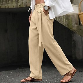 Жен. Брюки из хлопка и льна Широкие Чино Летние штаны Отпуск Уличный стиль Классический Полная длина Нормальная Полотняное плетение Карман Эластичная талия удобный Комфорт Слабоэластичная