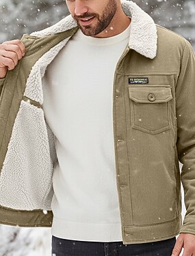 Муж. Вельветовый пиджак Флисовая жилетка Куртка-карго Куртка для работы по дому Официальные Дом Ветровка Прочный Карман Воротник из флиса Осень Зима Сплошной цвет Активный Винтаж Воротничок Обычная