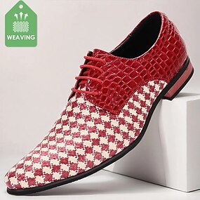 Муж. дерби Для прогулок На каждый день Полиуретановая кожа Нейлон Тканый Дышащий Удобный Против скольжения Шнуровка Красный Лето Весна